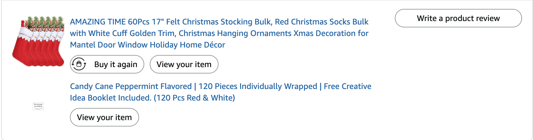 But of course, the plan wouldn't be complete with just lights. Next on our list was accessory decorations: we decided that the dorm entrance would need to be guarded by two snowmen. They would be joined by a 6 ft inflatable Santa which would live in the lounge. We also ordered some mistletoe; our goal was to… foster dorm relationships. Finally, we decided that in the gift-giving season, everyone ought to have a little present, so we got 60 stockings and 120 candy canes, with the plan of attaching a stocking to each door.
