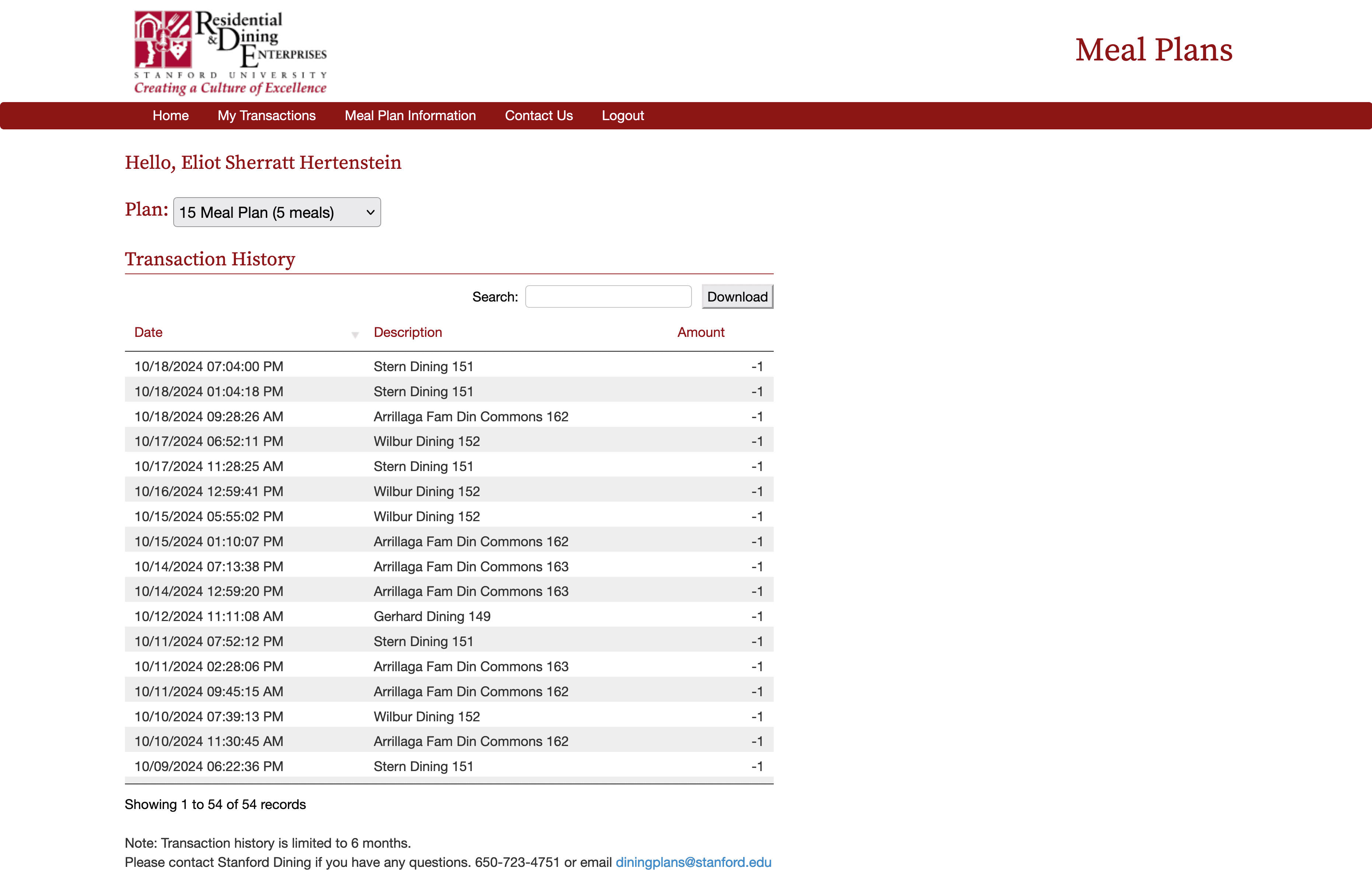 Since this post was written, Stanford changed the software they use for tracking our meal plans. Most of the visuals are out of date, and calculations may be innacurate.